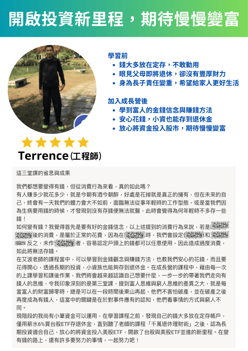 你不但會學到上面所說的內容,還包括每月主題課程實際運用案例剖析常見問題解答,讓你更快速往你的財務目標邁進!